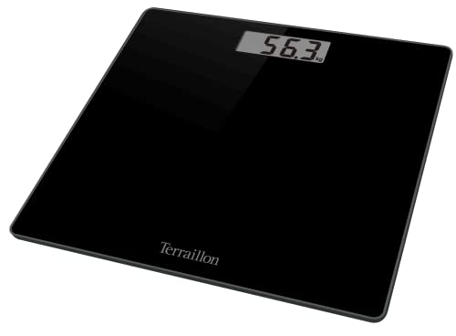TERRAILLON - TSQUARE SVART personvåg - kompakt och ultraplatt 26 cm x 26 cm-glasbricka - stor LCD-skärm kapacitet 180 kg - examen 100 g - svart