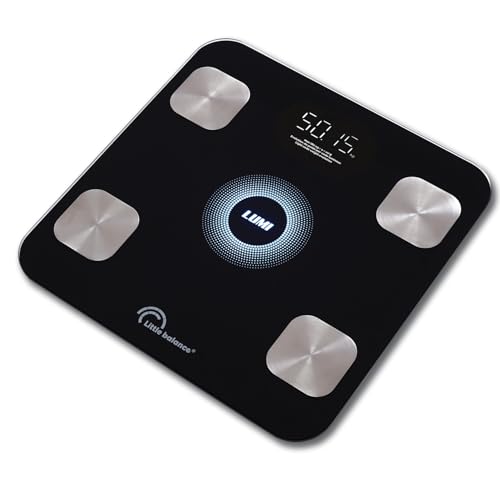 LITTLE BALANCE 8861 i-Lumi, ansluten personvåg, ansluten impedansmätare, 14 kroppsdata, 180 kg, härdat glas, svart