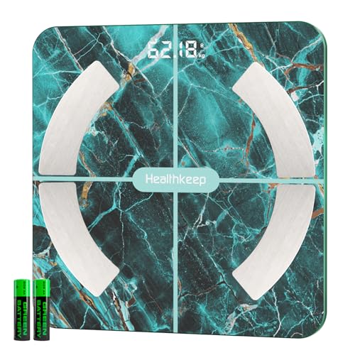Personvåg, Healthkeep Balance Bluetooth-impedansmätare ansluten hög precision med App 13 indikatorer för Andriod och iOS Max 180 kg/400 lb/28 st, 28 x 28 cm - grön marmor