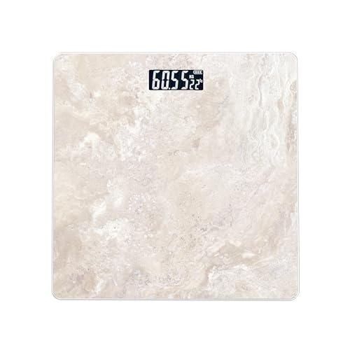 Healthkeep Digital personvåg, hög precision med ljusdisplay, 5 mm step-on-teknik, härdat glas, hög precision till 180 kg/400 lb, marmorvit