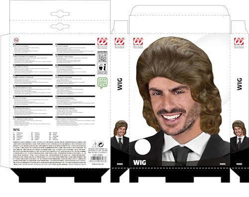 Widmann F0893 – peruk, full hårperuk, brun, lockad, bakre lång, peruk Frankie, syntetiskt hår, hårersättning, kostymtillbehör, 70-tal, karneval