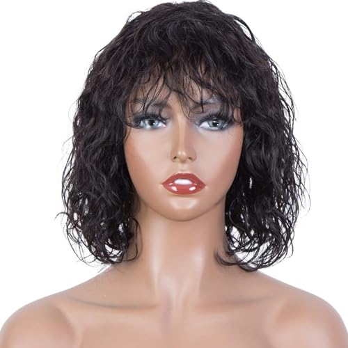 PARXITN Kort bob-peruk med naturlig lugg, färgglad syntetisk hårperuk, vardag, fest, halloween, cosplay, vågig, lockig, peruk för kvinnor