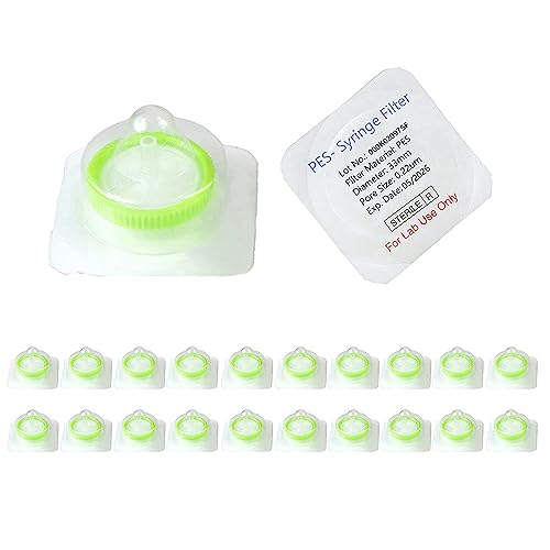 20 st sprutfilter Sterilt PES-membran 33 mm diameter 0,22um porstorlek, HPLC- och GC-nålfilter, laboratoriefiltrering med hög kapacitet för Biomed Scientific, förpackade i trummor