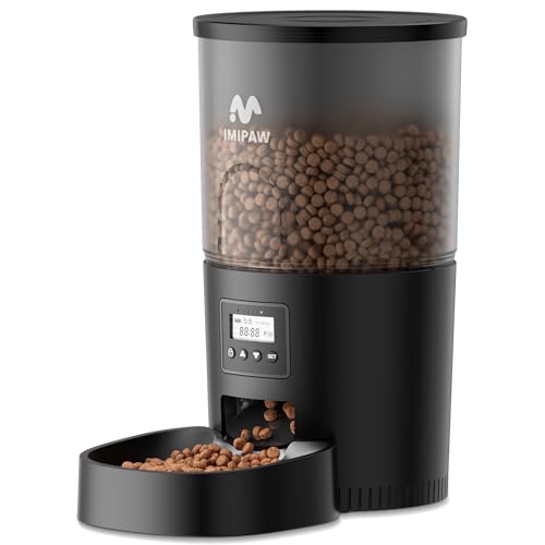 IMIPAW Automatic Cat Feeder, Pet Food Dispenser with Programmable Timer, 1-6 Meals Per Day, Button Control Lockable Lid, 5L Smart Auto Pet Feeders for Cats and Small Dogs