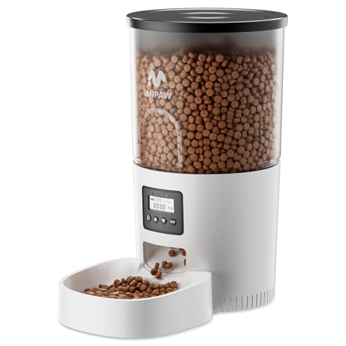 IMIPAW Automatic Cat Feeder, Pet Food Dispenser with Programmable Timer, 1-6 Meals Per Day, Button Control Lockable Lid, 3L Smart Auto Pet Feeders for Cats and Small Dogs (White-Button, 3L)