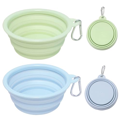 2 stycken Hopfällbar Silikon Djurskål med Karbinhake, Reseskål för Hund/Katt, matskål för husdjur, TPE+ABS Bärbar Hopfällbar 650ml Lättvikt 80g för Vandring, Camping, Hundrast (16x16x6cm)