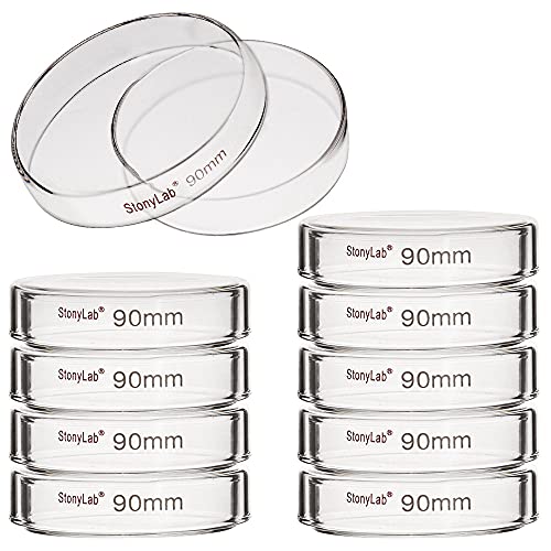 stonylab 10 st glaspetrifat, 90 x 20 mm autoklaverbar borsilikatglascell kulturrätter petriskålar med klart lock för laboratorium