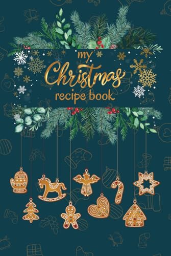 My Christmas Recipe Book To Write - Petrol Green Background Notebook: Quaderno per scrivere con fogli a righe | 200 pagine | FormatoA5 | Ricettario Natalizio Sfondo Verde Petrolio