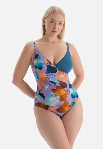 Dagi Dammode, formkläder minimiser baddräkt i ett stycke, Lilac - Petrol Green, 40 SE