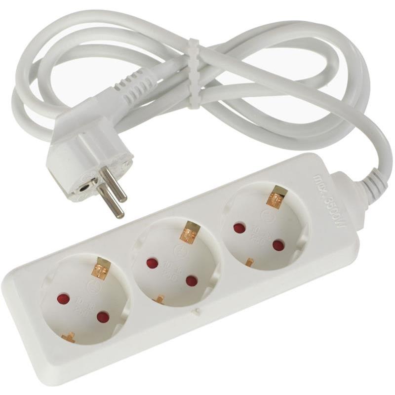 Gelia Grenuttag med petskydd, jordat, 3-vägs, vit, 3 m