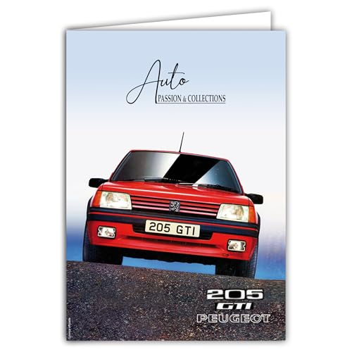 Peugeot 205 GTI AUTO PASSION SAMLINGAR officiell licens glänsande silverbil - vitt öppet kort 23 x 17 cm - med vitt kuvert 12 x 17,5 cm - födelsedag pensionering