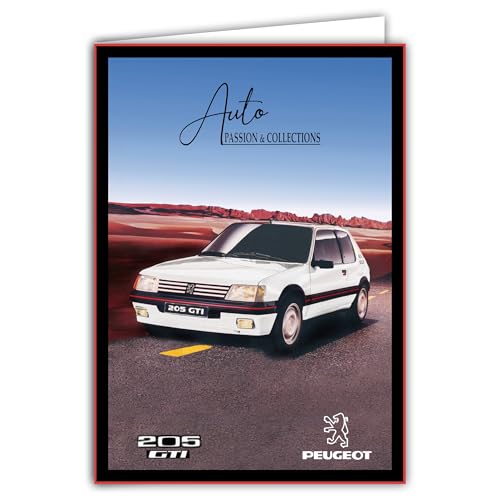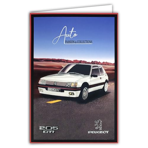 IETSCPXL-16132N MAXI stort kort XL 22 x 31 cm Peugeot 205 GTI officiell licens för motorsport samlarbil - vit interiör 44 x 31 cm - med kuvert - födelsedagsavgång