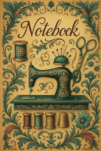 Vintage Floral Sewing Machine – A Beautiful Notebook for Creative Stitchers: A charming notebook design featuring an antique sewing machine surrounded ... patterns, project notes, and inspiration.