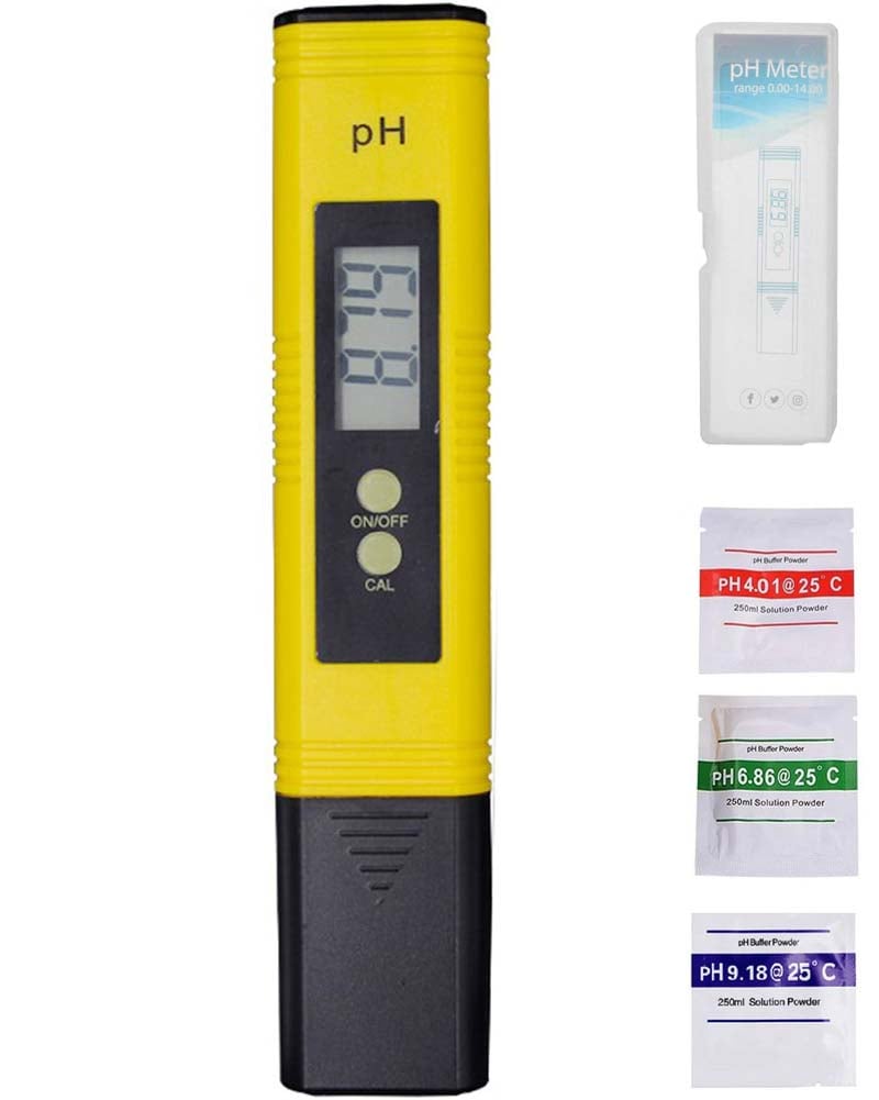 Bärbar LCD digital PH-mätare, hög noggrannhet PH-testare för vatten 0,01 upplösning 0-14 mätintervall PH-mätare med automatisk kalibrerings-akvarium, poolvatten, r vinprovningsverktyg (färg: Gul)