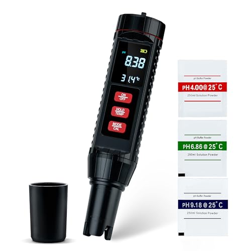 pH-mätare, Dr. meter PH-mätare, vatten 0,01, hög precisionsmätare med larm LCD-display och automatisk temperaturkompensation för vatten, akvarium, damm, pool med kalibreringspulver