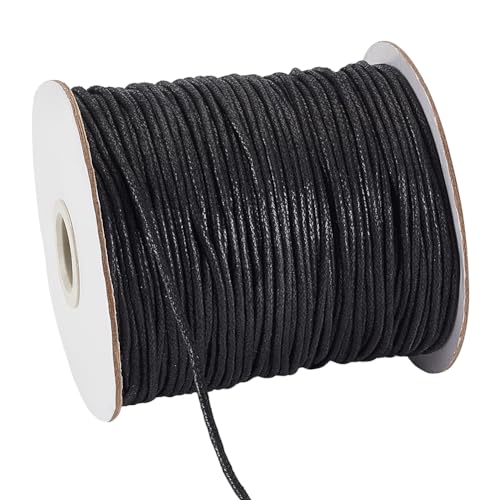 PH PandaHall cirka 100 meter 2 mm vaxad bomullssnöre tråd pärlsträng för armband, halsband, smyckestillverkning och makramétillbehör, svart