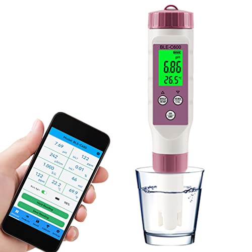 Pond Water TestKit, Digital PH EC ORP SG Salt Temp Meter, 0,05 ph High Accuracy Water Tester for Well Water, Water Hydroponics, Pool, Aquarium