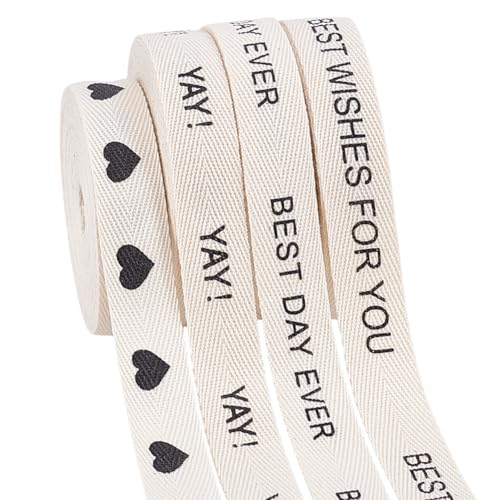 PH PandaHall 20 meter x 0,63 tum 4 stilar dekorativa band bomullsväv tryckt bomullsband med önskningsord för födelsedagstårta bukett presentinslagning hem fest bröllopsdekorationer