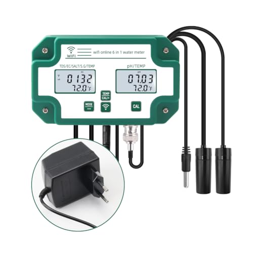 KKnoon Vattenkvalitetstestare 6 i 1 WiFi Vattenkvalitetsmonitor Multiparameter Digital PH/totalt upplöst fasta ämnen/EC/S.G/Salt/Temp Meter för akvarium Vattenbruk Pool