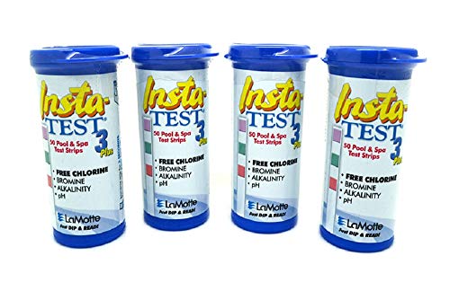 LaMotte 3-vägs Insta testremsor plus för simbassäng och badtunna spa - klor eller brom, pH och total alkinitet 4 x 50