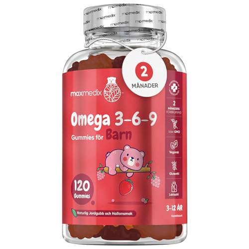 Omega 3 6 9 Gummies för barn - 400 mg perillaolja ger Omega 3, Omega 6 och Omega 9 per portion 120 veganska gummies - 2 månaders förbrukning - gummies med jordgubbs & hallonsmak- maxmedix