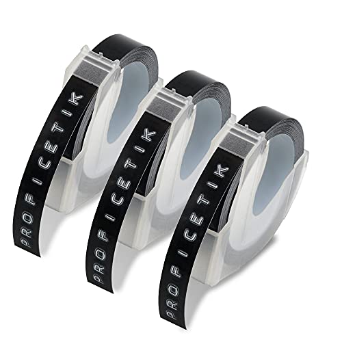3 X S0898130 kompatibel med Dymo Omega etikettband självhäftande 9 mm präglingstejp 3D vinyletiketter för Dymo Junior Omega hem etikettmaskin, vit på svart