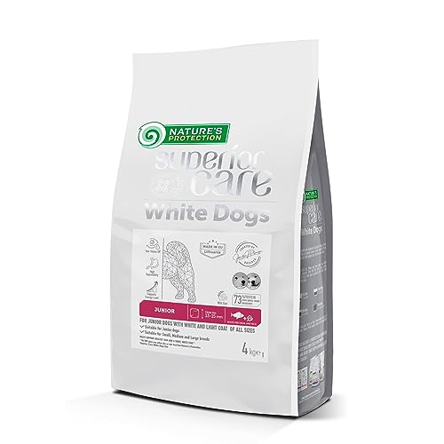 Nature's Protection Superior Care hundfoder torr med vitfisk och ris – allergivänligt torrfoder för junior vita hundar alla raser – Omega 3 & 6 – hud, päls och tårfläckar (4 kg)