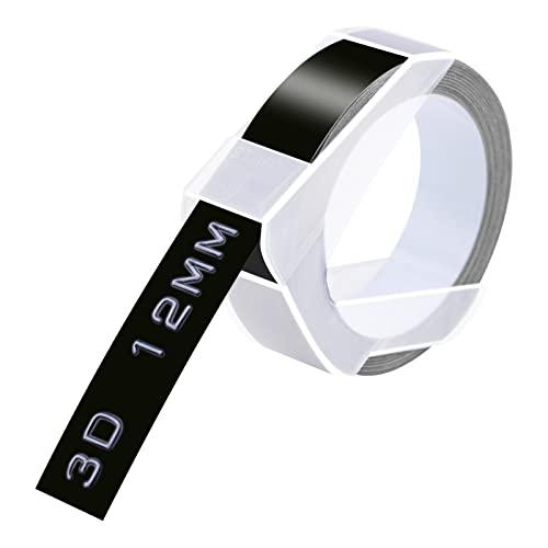 Cruxer 8-pack A898132 präglingstejp ersättning för Dymo 12 mm x 3 m vit på svart Omega 3D etiketttejp, självhäftande präglingstejp vinyletiketter för DYMO Omega Junior präglingsetiketter