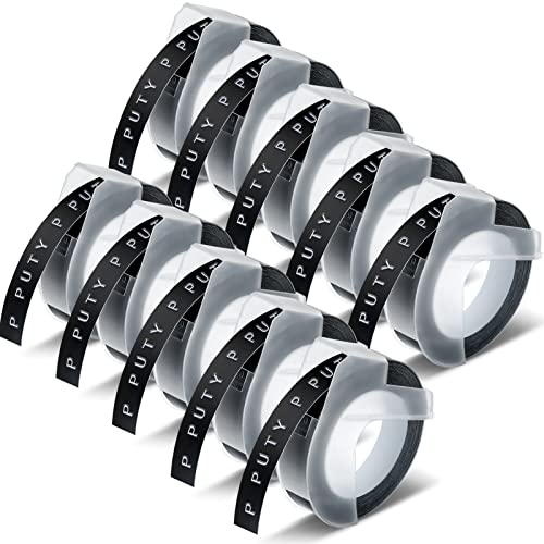 P PUTY 9 mm etikettband som ersättning för Dymo präglingstejp Omega Junior 3D, kompatibelt med Dymo-etikettband 9 mm, vitt på svart, 10 rullar