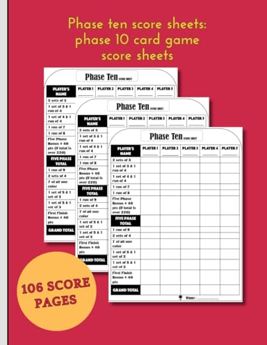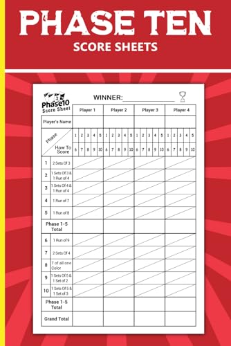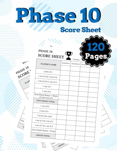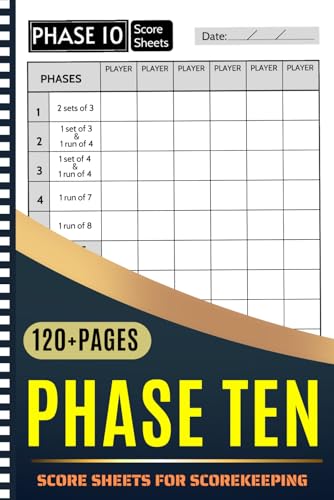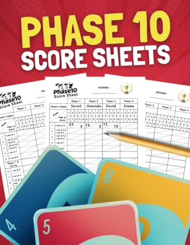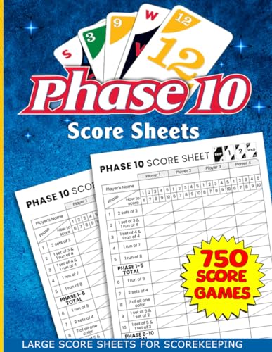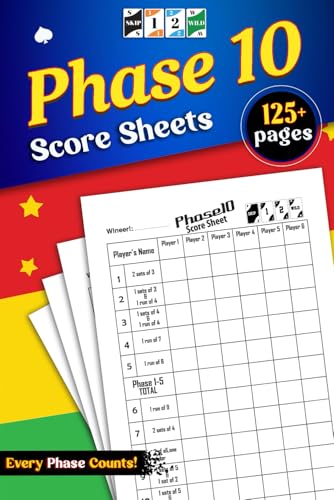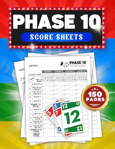 Phase 10 Score Sheets: Large Score Pages Book For Scorekeeping and track of the Fun and Strategy of the Classic Card Game