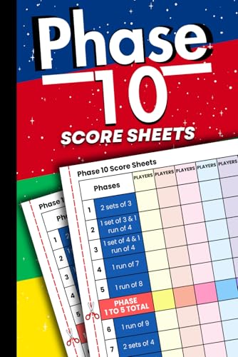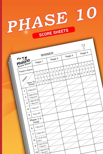 Phase 10 Score Sheets: Phase 10 Game Score Pads for Scorekeeping With Size 6 x 9 Inches