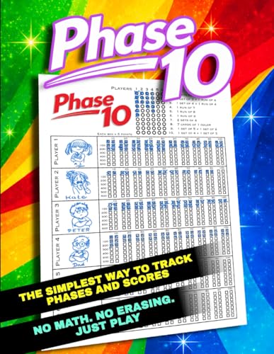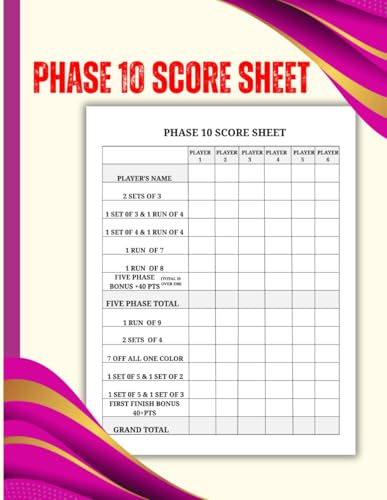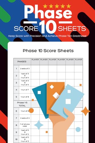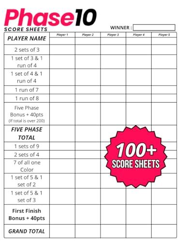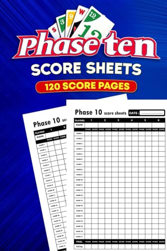 Phase 10 Score Sheet: Phase 10 Scorebook for 6 Players - Track Phases, Points, and Winners with Ease