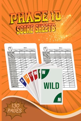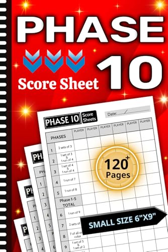 Phase 10 Score Sheets: 130 Page Travel Size Score Pads for v, Tracker Game Phase Ten Score Cards, Small Size 6 x 9 inches.