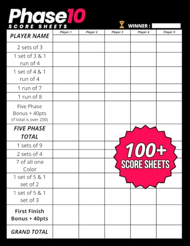 Phase 10 Score Sheets: score board for phase 10 card game | dice game for adults