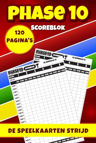 Phase 10 Scoreblok: Nederlandse Versie. 6 x 9". Kaartspel. 6 Spelers.