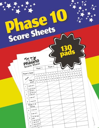 Phase 10 Score Keeper Sheets: 130 Large Pads for Phase 10 card game | 8.5 x 11 inches