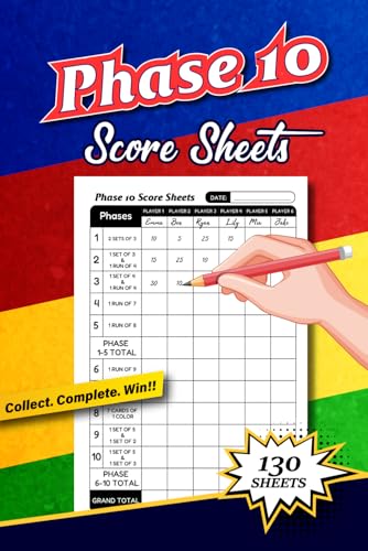 Phase 10 Score Sheets: 130 Pages to Track Scores with Rules Included | Easy Game Tracking for Family & Friends