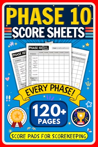 Phase 10 Score Sheets: Keep Score with Precision and Achieve Phase Ten Greatness! , 120 Pages for Scorekeeping