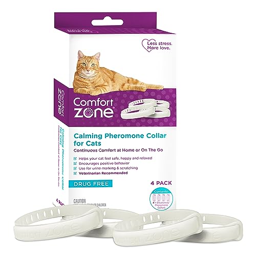 Comfort Zone Cat Calming Collar Value Pack: 4 30-Day Calming Collars for 120 Days of Calm; Cat Pheromones Help Anxiety, Reduce Stress, Urine Marking, Scratching; Indoor or Outdoor Cats; Long-Lasting