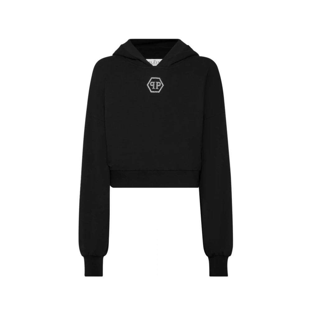 Philipp Plein, Sweatshirts & Hoodies , Dam, L, Bomull, Cropped Crystal Hexagon Logo Hoodie