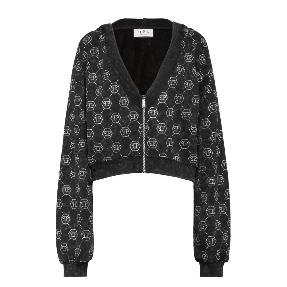 Philipp Plein, Sweatshirts & Hoodies , Dam, M, Polyester, Hoodie Sweatjacket Crystal Signature
