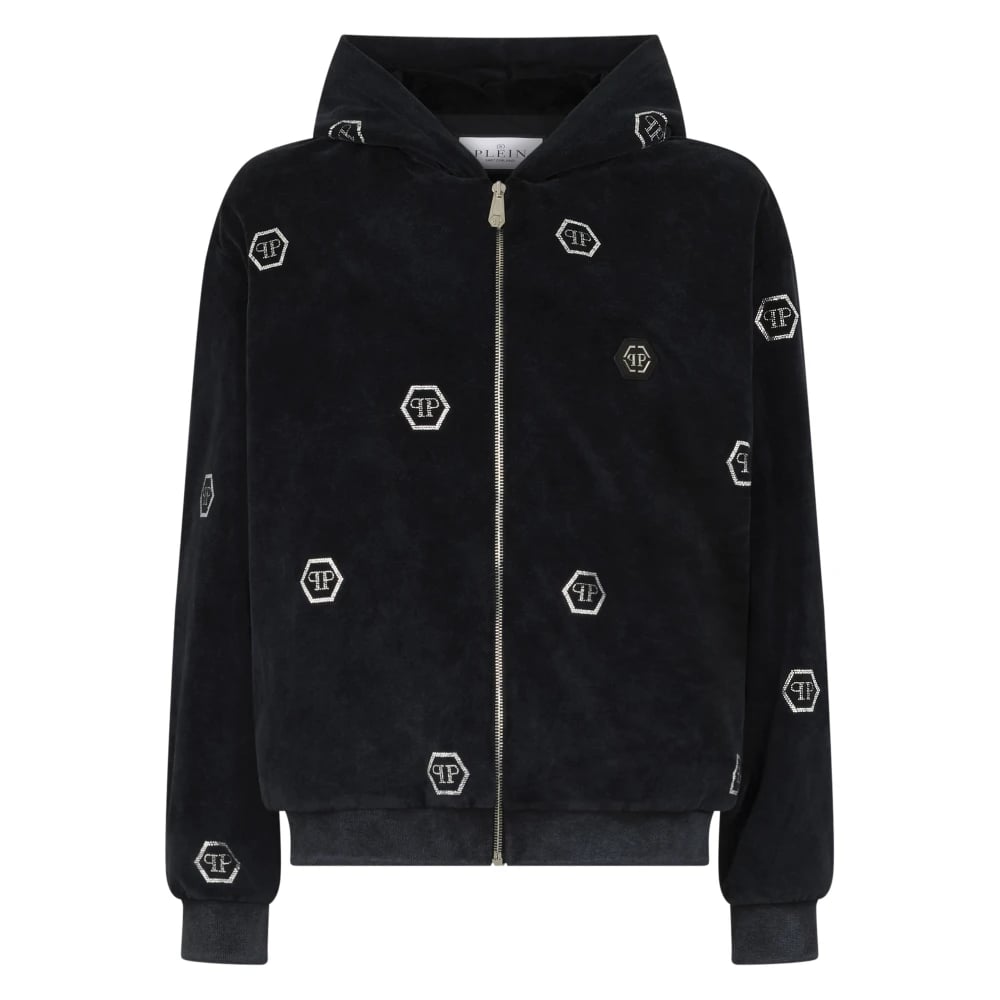Philipp Plein, Sweatshirts & Hoodies , Dam, S, Chenille Zip Hoodie Monogram Strass