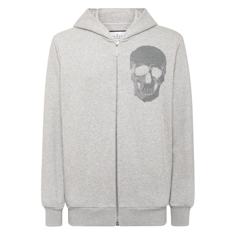 Philipp Plein, Sweatshirts & Hoodies , Herr, L, Bomull, Zippad Hoodie Sweatshirt Skull strass