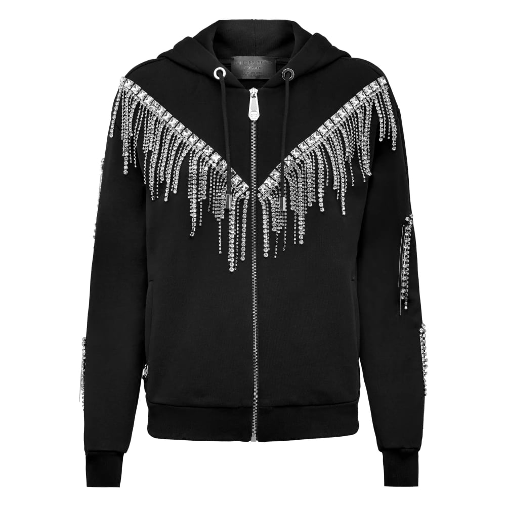 Philipp Plein, Sweatshirts & Hoodies , Dam, M, Bomull, Hoodie Sweatjacket Crystal Fringe