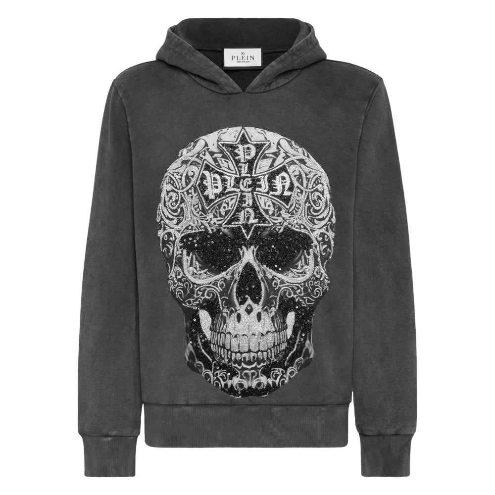 Philipp Plein, Sweatshirts & Hoodies , Herr, S, Bomull, Hoodie Sweatshirt LS Gothic