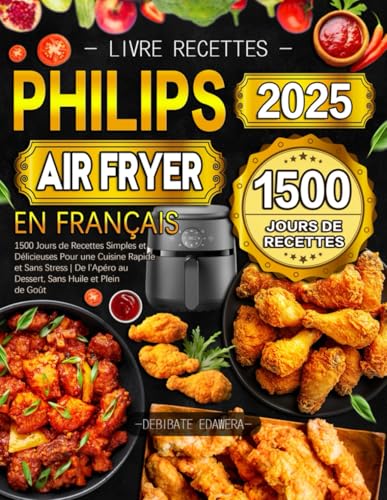 Livre Recettes Philips Air Fryer en Français: 1500 Jours de Recettes Simples et Délicieuses Pour une Cuisine Rapide et Sans Stress | De l’Apéro au Dessert, Sans Huile et Plein de Goût