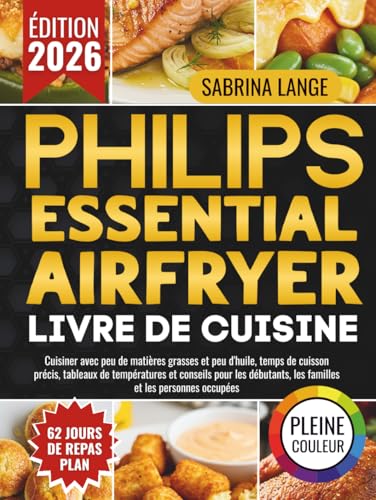 Philips Essential Air Fryer Livre De Cuisine: Cuisiner avec peu de matières grasses et peu d'huile, temps de cuisson précis, tableaux de températures ... les familles et les personnes occupées