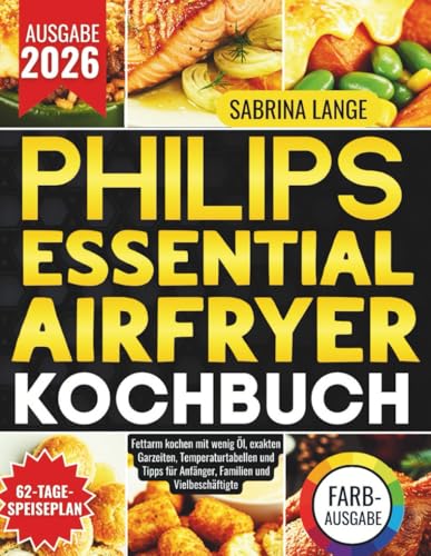 Philips Essential Airfryer Kochbuch: Fettarm kochen mit wenig Öl, exakten Garzeiten, Temperaturtabellen und Tipps für Anfänger, Familien und Vielbeschäftigte