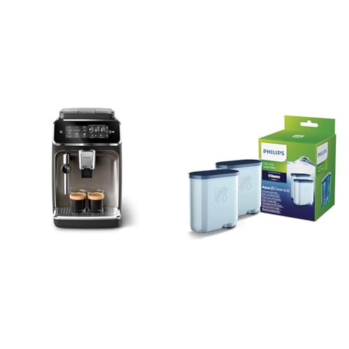 Philips 3300 Series helautomatiska espressomaskin - 5 drycker, Svart krom (EP3326/90) & Philips Original Kalk- och vattenfilter AquaClean - Lämplig för Philips Espressomaskiner - (CA6903/22)