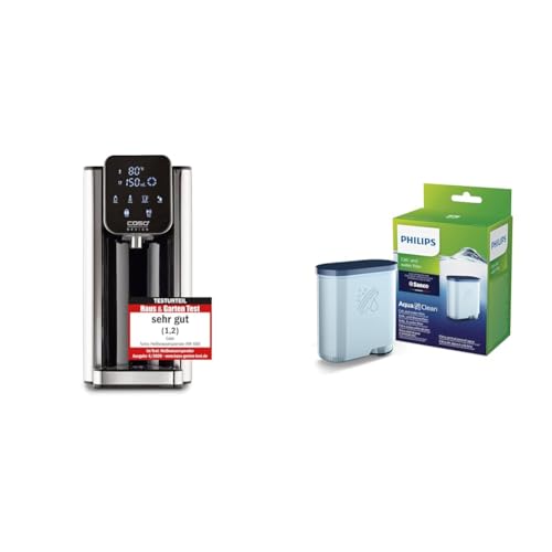CASO HW660 1879 Varmvattendispenser, Svart, Silver, 2.7 l & Philips AquaClean Kalk- och Vattenfilter, Passar Philips Helautomatiska Espressomaskiner, Tar bort Kalcium Naturligt, (CA6903/10)